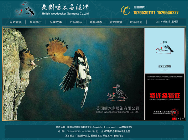英國啄木鳥服飾有限公司是2011年經(jīng)香港工商總局批準注冊并備案,啄木鳥服飾有限公司在香港成立,成為啄木鳥羽絨服半成品系列在中國大陸的唯一生產(chǎn)銷售商。公司產(chǎn)品主要有男式羽絨服半成品、女式羽絨服半成品及兒童羽絨服半成品。啄木鳥堅持"追逐時尚 追求品質(zhì)" 始終賦予變化卻又自有主張,永遠來去自如,永遠不失自我;在這個穿衣如同生活的年代,享受穿衣的樂趣。
